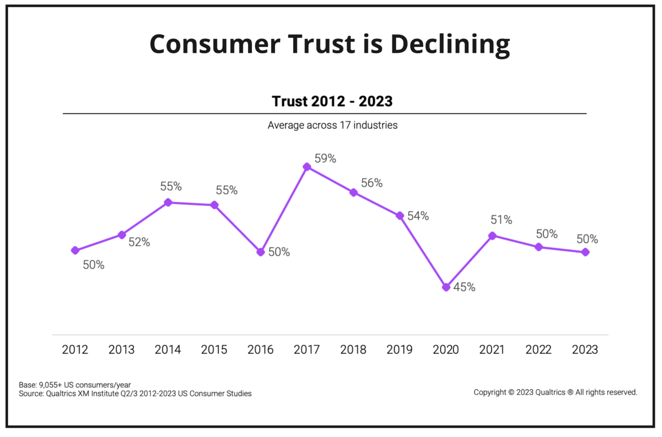 Check out this consumer trust survey from 2012 to 2023.